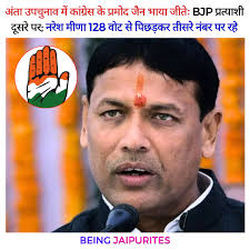 अंता उपचुनाव में कांग्रेस की जीत : प्रमोद जैन भाया 15,594 वोटों स . . .