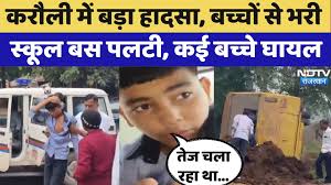 करौली में महवा-हिण्डौन मार्ग पर स्कूल बस पलटने से कई बच्चे घायल, . . .
