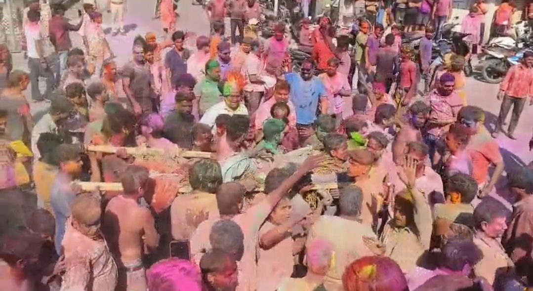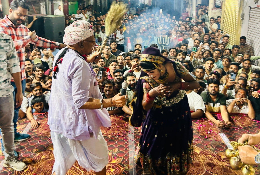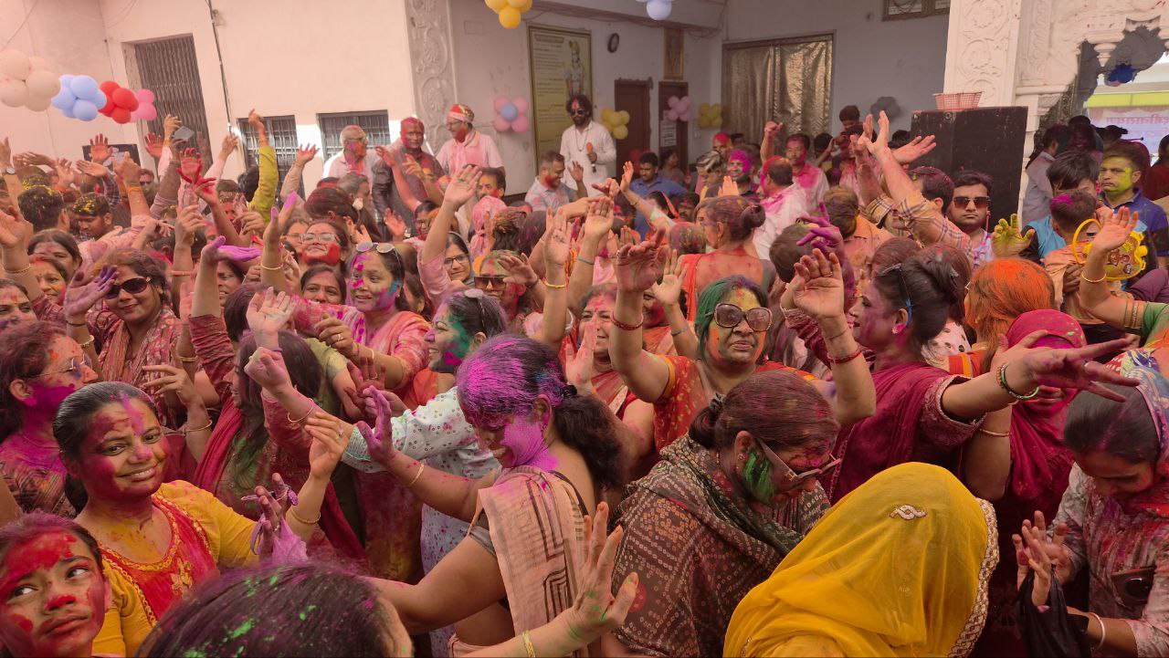 जयपुर के गोविंददेवजी मंदिर में भक्तों ने खेली होली:चंग की थाप पर . . .