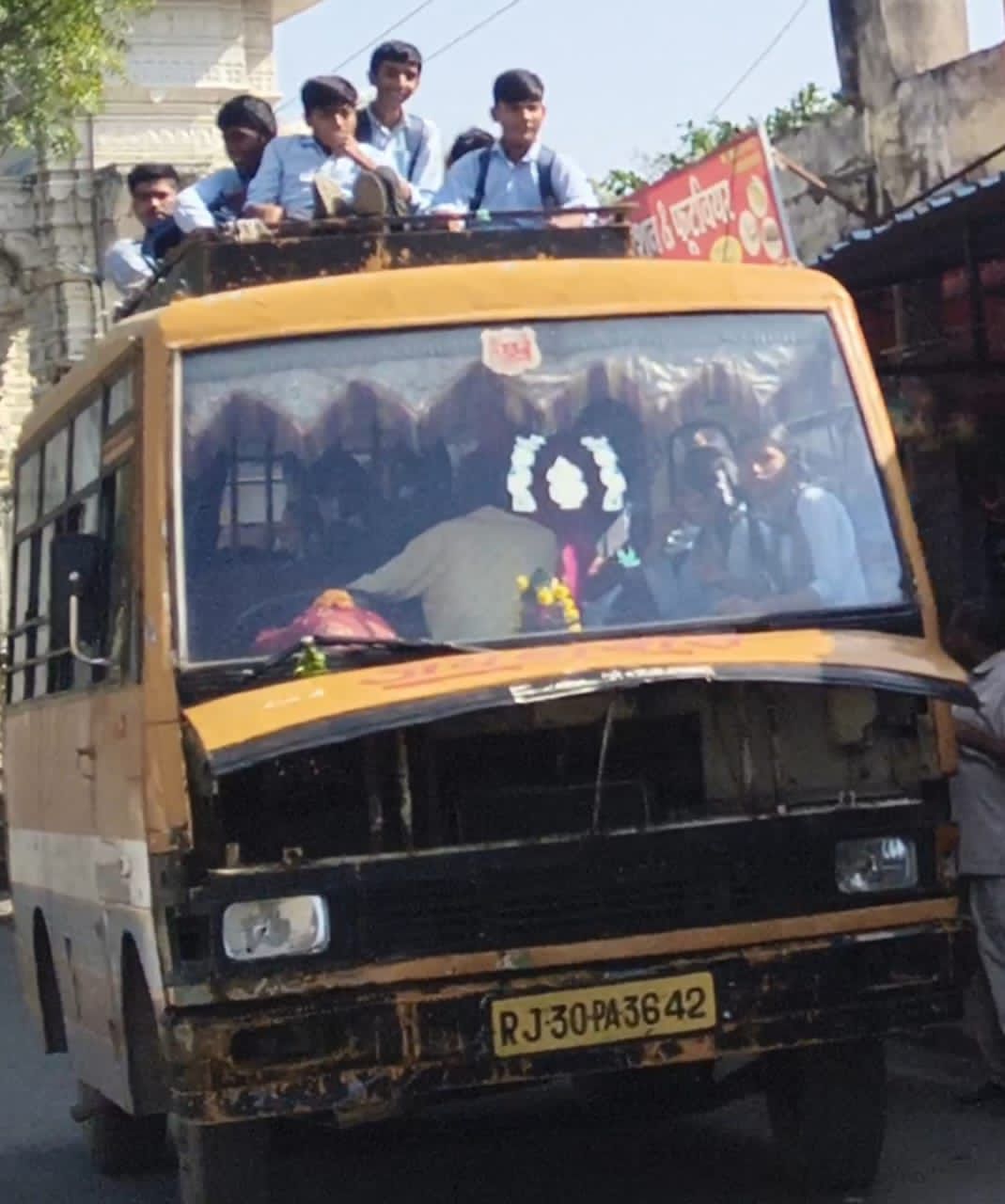 सडक़ सुरक्षा अभियान सिमटा, मासूमों का बस की छतों पर बैखौफ सफर . . .